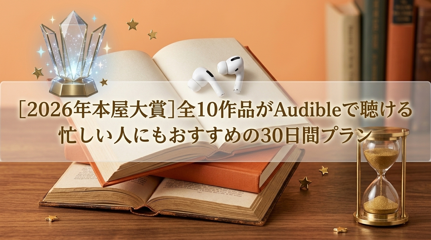 この記事では、本屋大賞ノミネート全10作のAudible配信状況と「忙しい人が30日間で聴き切るプラン」をまとめています。気になった1冊を、早速聴いてみてください。